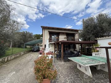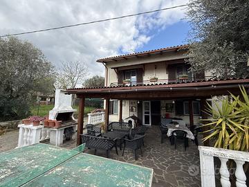 A circa 5 km da Castiglione, in posizione tranquilla e panoramica immersa nel verde, proponiamo in vendita casa indipendente di circa 214 mq disposta su due livelli, con ampio giardino privato e garage.?? Composizione ?L'abitazione è caratterizzata da un doppio ingresso, uno con accesso diretto al salotto e uno alla cucina, che garantisce funzionalità e comodità nella gestione degli spazi. ?Al piano terra troviamo un grande e luminoso salotto impreziosito da camino, una cucina abitabile con sala da pranzo e accesso diretto al grande portico attrezzato con barbecue in muratura e angolo cucina, perfetto per pranzi e cene conviviali, un pratico ripostiglio, una camera matrimoniale e un bagno. ?Salendo al piano primo si sviluppa la zona notte composta da tre ampie camere matrimoniali, due delle quali con balcone, una cameretta e due bagni, offrendo spazi generosi e ben distribuiti, perfetti anche per famiglie numerose. ?Al piano superiore è presente una soffitta di 107 mq attualmente utilizzata come spazio ripostiglio.?Esternamente la proprietà è circondata da circa 1.000 mq di giardino privato con annesso di 32 mq adibito a garage.?? Stato, rifiniture e potenzialità? L'immobile si presenta in ottime condizioni, con finiture di buon livello e dotazioni moderne: infissi nuovi in triplo vetro, 6 split per l'aria condizionata presenti in ogni camera e nella zona giorno, impianto fotovoltaico con produzione fino a 7 kW e batterie di accumulo, cancello elettrico e sistema di allarme con videocamere. Viene venduto completo di arredi. Il riscaldamento è alimentato a GPL. ?Soluzione ideale per chi cerca indipendenza, tranquillità e ampi spazi abitativi, senza rinunciare al comfort e all'efficienza energetica, in un contesto riservato ma facilmente raggiungibile.