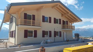 In posizione soleggiata e panoramica proponiamo in vendita degli appartamenti e delle Bifamiliari in fase di ultimazione saranno curate e rifinite in ogni sua parte con impiego di materiali di alta qualità con particolare attenzioni volte sia all' isolamento termico che acustico Le abitazioni presentano a piano terra la zona giorno composta da soggiorno cucina con possibilità di installare stufe a ole bagno e una prima stanza al primo piano l'intera zona notte servita da tre camere da letto due bagni due poggioli la distribuzione interna sopra descritta può essere personalizzata Ogni unità ha a disposizione un giardino privato un ampio garage da cento mq con possibilità di taverna cantina riscaldamento autonomo a gas GPL sono previsti sul tetto i panelli solari