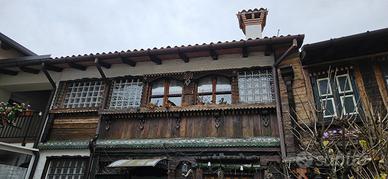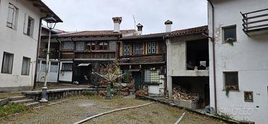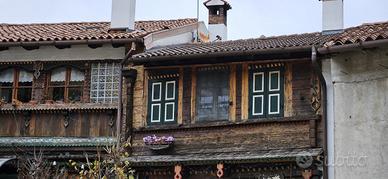 L'immobile in vendita è formato da due porzioni a schiera; la prima già abitabile, sviluppata su due livelli, di circa 95 mq, è molto accogliente e presenta finiture ricercate; la seconda porzione più grande, attualmente magazzino di circa 150 mq, si sviluppa sempre su due livelli, ed ha un grosso potenziale come altra abitazione; attualmente è adibita al piano terra a legnaia e grande laboratorio artigianale mentre al piano superiore troviamo un ambiente abitabile con grande terrazza.