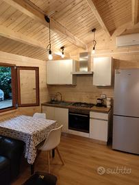 Vendo Nuova ed Incantevole Baita/Chalet di 25mq con annessa veranda di 8mq, costruita interamente in legno, con basamento in cemento piastrellato e posto auto privato accanto alla casa.