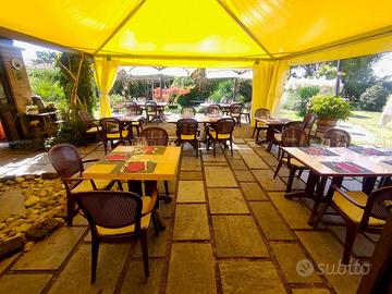 La seconda unità si collega alla prima attraverso un porticato coperto ed è attualmente un ristorante disposto su un unico livello e copre circa 300 mq. Dispone di una cucina professionale e un'ampia sala pranzo di circa 80 mq. Adiacente alla sala una veranda coperta di circa 60 mq. Il locale è in grado di accogliere circa 200 persone. Al piano interrato scoprirete una bellissima cantina per vini con volte a botte, ma anche un laboratorio per dolci, celle frigo e locali tecnici.