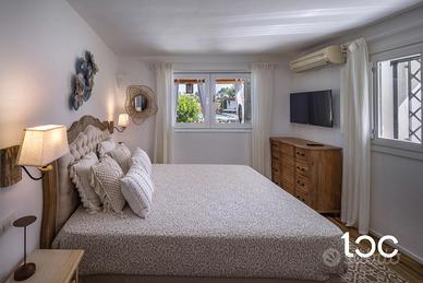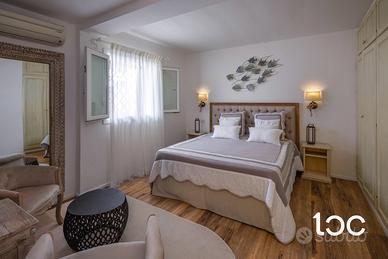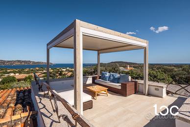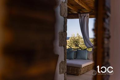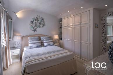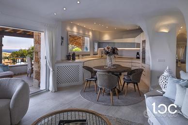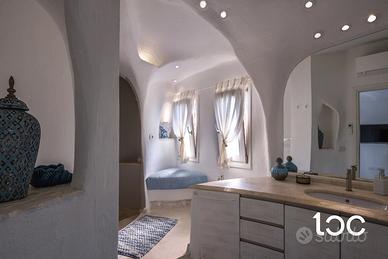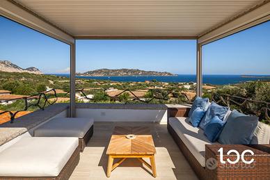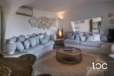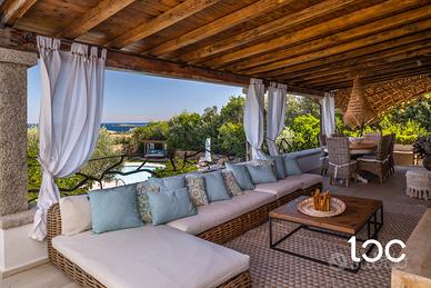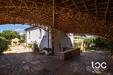 La villa, elegante e perfettamente mantenuta, è immersa in un contesto riservato e panoramico, ben protetta dai venti e ideale per chi cerca privacy e relax senza rinunciare alla bellezza e all'energia del territorio. La casa si sviluppa su due livelli, e offre ampi spazi interni ed esterni. Al piano superiore si trovano una luminosa zona giorno con vista mare, una grande terrazza panoramica attrezzata con zona pranzo per dieci persone, una camera padronale con bagno privato e vista mare, e una seconda camera matrimoniale. Al piano inferiore, collegato tramite scala esterna, si accede a un secondo soggiorno con cucina open-space e due camere matrimoniali, entrambe con bagno privato.