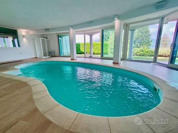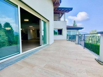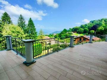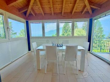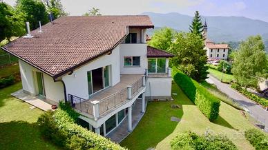 BEDERO VALCUVIA - A soli 10 minuti da Luino e a 20 minuti dalla Svizzera, proponiamo incantevole villa indipendente realizzata nel 2013. L'immobile si presenta in ottime condizioni, con finiture importanti. La villa è disposta su tre livelli collegati tra di loro con ascensore interno, oltre alle scale, ed è composta al piano terra da soggiorno con camino a legna ad areazione forzata con cucina a vista abitabile e zona pranzo, terrazzo di circa 60 mq con vista sul Lago Maggiore e sulla catena delle Alpi, disimpegno, bagno di servizio con doccia, camera e studio; al piano primo troviamo la zona notte formata da soppalco che si affaccia sulla zona giorno sottostante dove è possibile ricavare un'ampia camera matrimoniale con balcone, disimpegno, bagno, e due camere. Al piano seminterrato troviamo una zona relax composta da piscina interrata coperta con vista panoramica con possibilità di renderla esterna aprendo tutte le vetrate presenti, zona taverna con angolo cottura e vetrate, lavanderia, bagno e cantina. Infine al piano interrato è composto da autorimessa quadrupla. Tutti i piani, tranne l'autorimessa, sono scaldati con riscaldamento a pavimento. Pannelli fotovoltaici da 6 kw e pompa di calore nuova. Giardino non del tutto pianeggiante di circa 2000 mq. Ottima esposizione e vista super. Ascensore che collega tutti i piani, dal piano interrato al piano della zona notte. RIFERIMENTO: MFBEDERO16 CLASSE ENERGETICA: B 65,25 kWh/m2 a