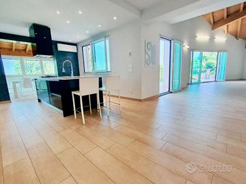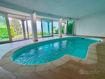 BEDERO VALCUVIA - A soli 10 minuti da Luino e a 20 minuti dalla Svizzera, proponiamo incantevole villa indipendente realizzata nel 2013. L'immobile si presenta in ottime condizioni, con finiture importanti. La villa è disposta su tre livelli collegati tra di loro con ascensore interno, oltre alle scale, ed è composta al piano terra da soggiorno con camino a legna ad areazione forzata con cucina a vista abitabile e zona pranzo, terrazzo di circa 60 mq con vista sul Lago Maggiore e sulla catena delle Alpi, disimpegno, bagno di servizio con doccia, camera e studio; al piano primo troviamo la zona notte formata da soppalco che si affaccia sulla zona giorno sottostante dove è possibile ricavare un'ampia camera matrimoniale con balcone, disimpegno, bagno, e due camere. Al piano seminterrato troviamo una zona relax composta da piscina interrata coperta con vista panoramica con possibilità di renderla esterna aprendo tutte le vetrate presenti, zona taverna con angolo cottura e vetrate, lavanderia, bagno e cantina. Infine al piano interrato è composto da autorimessa quadrupla. Tutti i piani, tranne l'autorimessa, sono scaldati con riscaldamento a pavimento. Pannelli fotovoltaici da 6 kw e pompa di calore nuova. Giardino non del tutto pianeggiante di circa 2000 mq. Ottima esposizione e vista super. Ascensore che collega tutti i piani, dal piano interrato al piano della zona notte. RIFERIMENTO: MFBEDERO16 CLASSE ENERGETICA: B 65,25 kWh/m3 a