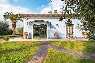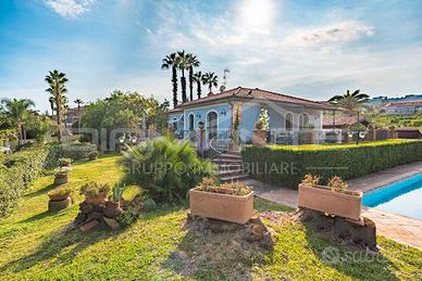 Panoramica ed Esclusiva Villa singola con piscina In vendita splendida villa singola immersa in un lotto di terreno di 3.000 mq, curatissimo e ricco di piante ornamentali, palme e alberi ad alto fusto. La proprietà si sviluppa interamente su un unico livello di circa 300 mq coperti, con ampi spazi interni, rifiniture di pregio e dettagli unici in autentico stile siciliano. Composizione interna oIngresso su ampio salone doppio con camino, in raffinato stile rustico siciliano oCucina in muratura con pregiate ceramiche di Caltagirone oBagno ospiti di recente ristrutturazione e ripostiglio oUlteriore salone doppio panoramico con vista mozzafiato sul Golfo di Catania oZona notte composta da tre camere da letto, di cui una con bagno privato oSecondo bagno e ulteriore ripostiglio a servizio della zona notte Esterni e pertinenze oAmpio giardino di 3.000 mq, perfettamente curato oPiscina privata con splendida area relax oDoppio garage e tettoia coperta per auto oGiardino d'inverno totalmente chiuso a vetri, con bagno privato Efficienza energetica e comfort moderno La villa è stata sempre mantenuta con grande cura e recentemente è stata oggetto di importanti interventi: oCappotto termico oImpianto fotovoltaico oSolare termico Caratteristiche principali o300 mq interni su unico livello oLotto di 3.000 mq con giardino esclusivo oPiscina privata e giardino d'inverno oStile siciliano con rifiniture pregiate oVista panoramica unica sul Golfo di Catania oSoluzioni tecnologiche per l'efficienza energetica Un immobile di prestigio che coniuga tradizione e innovazione, ideale per chi desidera vivere in un contesto esclusivo, elegante e riservato. ? Contattaci per maggiori informazioni o per prenotare una visita privata.