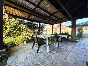 Ad incorniciare questo immobile troviamo un grande giardino di c.a. 700 mq con parte piastrellata e porticato ideale per godere della tranquillità, del verde e perfetto per pranzi e cene all'aperto.