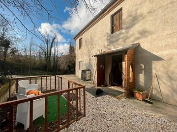 A Cupramontana, in contesto agricolo, vendiamo proprietà indipendente con meravigliosa corte esclusiva recintata di 1000 mq ca. L'immobile è stato completamente ricostruito e si presenta attualmente suddiviso in due unità abitative, un appartamento al piano terra ultimato con un'ampia cucina, bagno e una spaziosa sala da pranzo ed un appartamento al piano primo al grezzo, con la possibilità di aggiungere camere da letto. Le due unità sono ricollegabili internamente.