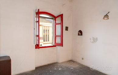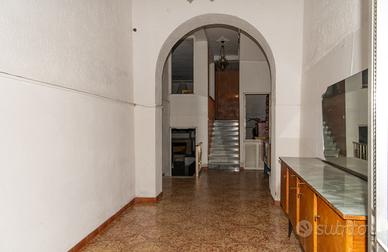 (Riferimento: 1347) Casa indipendente su tre livelli e composta da ampio ingresso e zona cucina-taverna al piano seminterrato. Dalla scala si accede a un vano utilizzato come zona giorno e proseguendo si arriva al piano primo dove ci sono quattro camere e il bagno della casa. Al piano secondo troviamo una camera con bagno e zona lavanderia. Piccolo lastrico solare. La casa è da ristrutturare. Facciamo presente a chi interessa, che a parte è disponibile un locale commerciale al piano terra di circa mq 26,00. Classe Energetica D.
