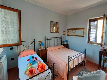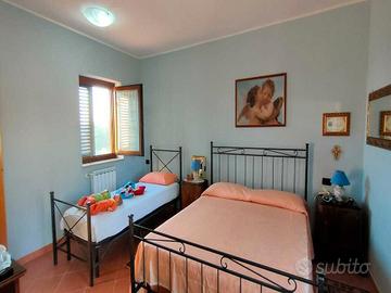 Soluzione indipendente immersa nel verde nelle vicinanze dello zoo delle Maitine in località Nucleo Simonini in Pesco Sannita. L'immobile si sviluppa su 2 livelli: piano terra suddiviso in soggiorno, cucina, disimpegno e wc; piano superiore, collegato con scala a chiocciola interna o con ingresso indipendente da scala esterna, suddiviso in 2 camere da letto e wc. Piazzale per parcheggio antistante l'immobile e terreno sul retro di circa 800 mq.