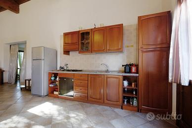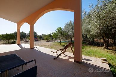 (Riferimento: 008) Pula A poca distanza dal centro del paese e dal mare, disponiamo di un ampia e rifinita casa indipendente con terreno di circa 12000mq. La proprietà, posizionata in una zona agricola di assoluta tranquillità è composta da un ampio ingresso soggiorno con cucina a vista e camino, disimpegno, due camere da letto e bagno. Possibilità di poter ricavare ulteriori stanze e bagno. Un ampio loggiato che si affaccia su un terreno piantumato e con circa 130 bellissimi ulivi secolari completa questa interessante soluzione. Ideale per chi cerca tranquillità a poca distanza dal mare. Per ulteriori informazioni contattare i nostri uffici.