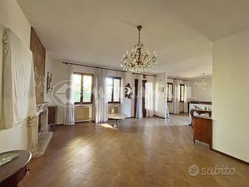 - Piano terra: ampio soggiorno-pranzo con camino in stile Luigi XVI in onice del Portogallo, perfetto per creare un'atmosfera accogliente, salottino verandato, cucina separata, disimpegno, due camere spaziose e bagno finestrato.