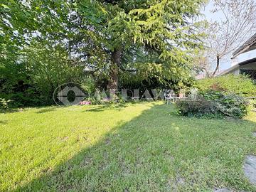 - Lotto ampio e curato di circa 1400 mq, con giardino ben piantumato, suddiviso tra una zona frontale e una posteriore.