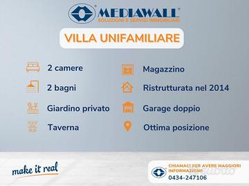 (Riferimento: BQ-300-RV) Teglio Veneto (Rif: BQ-300-RV) VILLA UNIFAMILIARE INDIPENDENTE - 2 CAMERE - 2 BAGNI - TAVERNA - GARAGE - GIARDINO PRIVATO - RISTRUTTURATO NEL 2014 - OTTIMA POSIZIONE In centro di Teglio Veneto, proponiamo questa stupenda villa unifamiliare costruita nel 64' e completamente ristrutturata nel 2014, con giardino privato di circa 900mq. Questa villa è il connubio perfetto tra privatezza, comodità e vicinanza ai servizi. L'immobile ristrutturato nel 2014 vanta impianti elettrico e idrotermosanitario rifatti, tetto nuovo, taverna con infissi doppio vetro e cucina. Concludono la proprietà 900mq di giardino privato recintato. L'IMMOBILE È COSI' COMPOSTO: PIANO TERRA: Ingresso che collega la taverna con cucina, al bagno finestrato con doccia e al garage doppio. PIANO PRIMO: Corridoio che collega la cucina abitabile all'adiacente salotto, troviamo poi un disimpegno nella zona notte che collega le due camere da letto matrimoniali con il secondo bagno finestrato con doccia. ESTERNO: Giardino privato recintato di circa 900mq con orto e magazzino di 30mq. Non perderti quest'occasione, prenota ora la tua visita personalizzata!