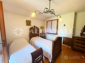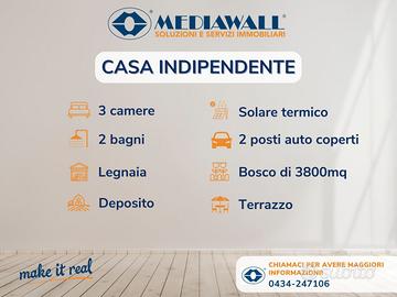 (Riferimento: BR-264-RV) Travesio Fraz. Usago (BR-264-RV) INDIPENDENTE | PANORAMA VERDEGGIANTE |SOLARE TERMICO DOPPIO POSTO AUTO COPERTO In una posizione incantevole contornata da montagne e boschi, panorama verdeggiante, a soli 30 minuti da Pordenone, ad un'ora dai litorali di Bibione e Lignano e dal comprensorio sciistico di Piancavallo, proponiamo in vendita questa esclusiva abitazione indipendente, realizzata con cura sul finire degli anni ottanta. Il corpo principale, che si dispone su due livelli fuori terra, coniuga tradizione e innovazione con elementi caratteristici della tradizione architettonica locale e l'innovazione presente nel sistema di impianto solare per il riscaldamento dell'acqua. Entrando, si coglie immediatamente l'armoniosa cura del particolare che ci accompagna in ogni angolo della casa. Partendo da un ampio ingresso al piano terra, si accede all'ampia cucina, per proseguire nel caratteristico e luminoso soggiorno con pavimentazione a mosaico del 1876 e al disimpegno che dà accesso al bagno finestrato, locale lavanderia e caldaia. Salendo al primo piano troviamo un disimpegno che conduce a tre ampie camere da letto, ad un secondo bagno finestrato con doccia ed un terrazzo che affaccia sul panorama verdeggiante. L'abitazione è accessoriata di deposito di 62 mq adatto a più utilizzi, con ampia tettoia per due posti auto e ampia legnaia di circa 50 mq. Contorna la proprietà un parco meraviglioso con bosco di circa 3.800 mq. Davvero una rara opportunità, sia per chi aspira a vivere in relax il proprio tempo libero, ma anche per chi desidera abitare nella pace e nella tranquillità di un borgo antico senza privarsi dei più moderni confort.