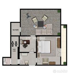 una cameretta/studiolo con accesso diretto a un ampio terrazzo a livello, completo di ripostiglio, perfetto per momenti di relax o per chi ama gli spazi esterni,