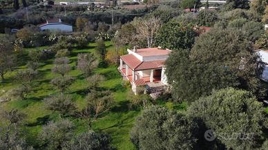 La casa, articolata al piano terra è composta da un ampia veranda di 28 mq, soggiorno con angolo cottura, due camere da letto, bagno ed un ulteriore vano di 13 mq realizzato di recente con copertura a falde in legno, pavimenti ed infissi nuovi, completa la proprietà un terreno pianeggiante di oltre 6000 mq, interamente recintato, piantumato con alberi d'ulivo, agrumi ed altri alberi da frutto; inoltre sono presenti due pozzi ed una generosa riserva idrica.