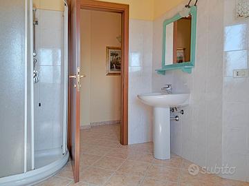 Ingresso, soggiorno con cucina a vista, disimpegno, camera da letto, bagno e ripostiglio al piano terra e due camere da letto, di cui una con piccola cabina armadio e balcone, e bagno , disimpegno e due ripostigli al piano primo.