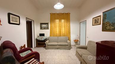 L'abitazione si apre con un ingresso che accoglie le prime due ampie camere, situate rispettivamente a destra e a sinistra. Proseguendo nel disimpegno, si entra nel cuore della casa: un soggiorno centrale che collega da un lato la cucina abitabile e dall'altro una terza camera spaziosa. Un ulteriore disimpegno conduce infine al bagno e all'uscita verso il cortiletto interno sul retro.