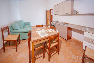 Una volta varcato il portoncino pedonale ci troviamo davanti al cortile accogliente, in parte cementato con posti auto e in parte piantumato. Accediamo alla proprietà e troviamo I'ingresso, il disimpegno ci permette di accedere ai vari ambienti come il soggiorno con angolo cottura, camera di generose metrature e il bagno con doccia.