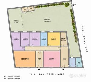 Via San Gemiliano, zona strategica e ricca di servizi, proponiamo in vendita casa indipendente dalle generose metrature con ampio giardino. Limmobile, sito su un grande lotto angolare, dispone di tre ingressi, due pedonali dalla via san Gemiliano ed uno carrabile dalla via Cavallara. Internamente si compone di ampio soggiorno, profondo andito, cucina abitabile con angolo cottura riservato, impreziosita da camino a legna, e collegata tramite porta finestra al punto forte della casa, uno spazioso cortile in parte piantumato, perfetto per momenti di relax allaria aperta, ideale per gli amanti del giardinaggio. La zona notte si compone di quattro camere da letto, di cui due matrimoniali, una doppia ed una singola servite da spazioso bagno con vasca. Completa limmobile un ulteriore vano, perfetto come studio o spazio lavoro collegato ad una comoda zona lavanderia, anchessa annessa al cortile e dotata di bagno di servizio. La proprietà è caratterizzata da ampie metrature che permettono il frazionamento in due unità abitative distinte e indipendenti tra loro, con possibilità di sopraelevazione, per la creazione di piani superiori. Soluzione ideale per una famiglia alla ricerca di una casa da personalizzare con generose metrature interne ed esterne, o per coloro alla ricerca di un ottimo investimento per la creazione di due immobili. RIFERIMENTO: Via San Gemiliano CLASSE ENERGETICA: In fase di valutazione