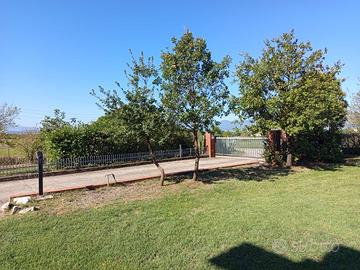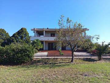 Soluzione indipendente immersa nel verde nella primissima periferia della città. L'immobile è ideale come bifamiliare: è strutturata per ospitare al piano terra un appartamento di 4 vani e servizi, con porticato antistante ed un ulteriore appartamento con un vano al piano terra e 3 vani con servizi al piano superiore, oltre terrazzo. Completa ampia taverna al piano seminterrato. Lo stato di manutenzione è ottimo. Lo spazio esterno di oltre 3.000 mq è un'area versatile, che offre molteplici possibilità d'uso, dalla realizzazione di campetti sportivi alla costruzione di una piscina attrezzata. E' completamente recintato e dispone di un vialetto di accesso per le auto, che conduce ad un box auto di circa 60 mq sul retro.