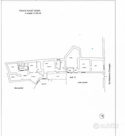 Al piano terra,con accesso autonomo da un cortile comune ad altre abitazioni, troviamo l'ingresso, cucina, camera da pranzo con uscita ad un piccolo pozzo luce interno di proprietà, tre vani utilizzabili come camere da letto (di cui due senza finestra diretta), due bagni e ripostiglio/dispensa. Possibilità di divisone in due piccole unità immobiliari;