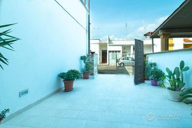 VR312 Casa indipendente su tre livelli completamente ristrutturata, situata nel cuore di Taviano, a pochi minuti dalle spiagge del basso Salento. L'immobile si sviluppa su tre livelli: - Piano terra Accesso da cancello privato con cortile e posto auto scoperto. Ampio vano scala/ingresso coperto utilizzabile anche come posto auto coperto. - Piano abitativo Ingresso luminoso, soggiorno con balcone, sala da pranzo con camino a legna e balcone verandato (fruibile tutto l'anno), cucinotto. Due camere da letto (una con balcone privato) e bagno con doccia walk-in a filo pavimento. - Secondo livello Vano lavanderia e ampio terrazzo panoramico con vista libera su Taviano e sul paesaggio salentino. Impianti completamente rifatti: - Elettrico, idrico e fognante autonomo - Riscaldamento a metano con radiatori in ghisa - Climatizzazione in soggiorno e zona notte - Infissi nuovi con tapparelle elettriche - Sistema accumulo idrico + predisposizione pannello solare Superficie: 184 mq abitativi Anno costruzione: anni '80 -- ristrutturazione completa Spazi esterni: cortile privato, terrazzo panoramico, 2 posti auto Soluzione pronta all'uso, ideale come prima casa per famiglia o come investimento immobiliare nel Salento. Per informazioni e sopralluoghi potete contattare la nostra Agenzia Re-King International Real Estate