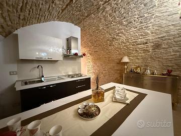 Nel cuore del Centro Antico e a due passi dall'Estramurale San Pietro, in strada transitabile in auto, vendiamo una tipica abitazione indipendente terracielo, composta da ingresso al piano terra su ampio disimpegno, grande soggiorno con caratteristica volta in pietra con angolo cottura e bagno, 1° piano cucina con balconcino su strada, camera da letto matrimoniale e altra camera comunicante, 2° piano con ampia soffitta con camino e grazioso terrazzino.