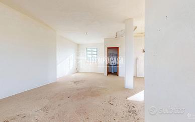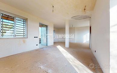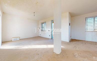 Il piano rialzato, di circa 55 mq, attualmente privo di tramezzature interne, è progettato per accogliere tre vani così distribuiti: ingresso su zona giorno open space, disimpegno, camera matrimoniale, camera singola e bagno.