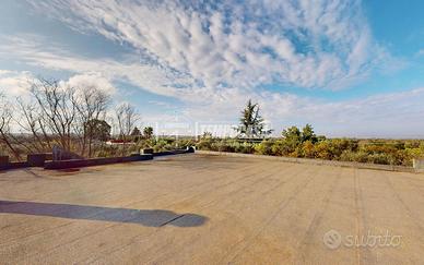 Una seconda scala esterna conduce al terrazzo panoramico di 80 mq, da cui godere della vista sulla campagna circostante.