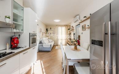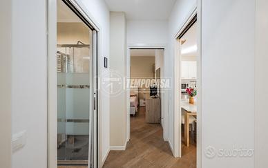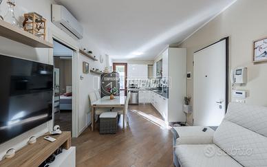 Ingresso in sala con angolo cottura, disimpegno notte con due camere da letto e bagno.