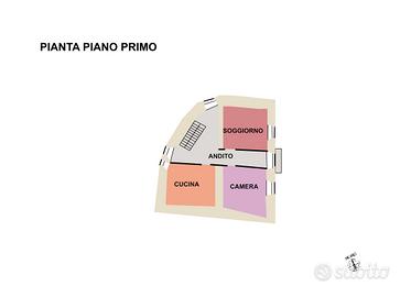 primo piano: la cucina, un soggiorno e la prima camera;