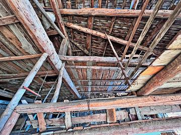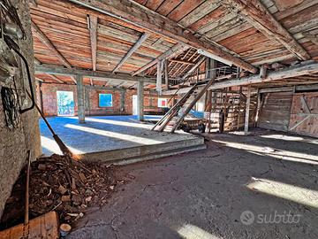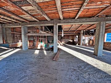 La struttura si sviluppa su più livelli e offre diverse possibilità di utilizzo. Al piano terra si trovano ampie cantine con caratteristici soffitti a "volta a botte", due garage e un ampio androne che attraversa l'intero edificio. Al primo piano si trova un ampio appartamento composto da ingresso, zona giorno con angolo cottura, tre camere da letto, bagno, cantina e veranda. Inoltre, è presente un'ampia aia/soffitta su due livelli, che potrebbe essere sfruttata per creare ulteriori appartamenti. Adiacente all'abitazione, vi è un piccolo appezzamento di terreno adibito a giardino. Questa è un'ottima opportunità per trasformare l'immobile in una casa vacanza, un piccolo B&B o una residenza principale, data la sua ampia metratura.