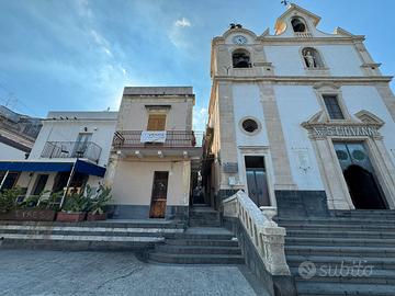 Al piano terra, l'ingresso principale si apre direttamente sulla piazza, attraverso uno spazio esterno privato di circa 15 mq, che offre un angolo riservato pur trovandosi nel centro del paese. Da qui si accede ad un vano di circa 40 mq, pieno di potenzialità. Un secondo accesso, più discreto, si trova nel caratteristico Vico Chiesa, una viuzza laterale che aggiunge un tocco di riservatezza e praticità e conduce ad una stanza con bagno di circa 40 mq.