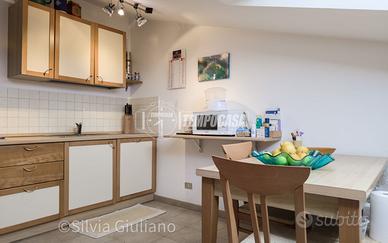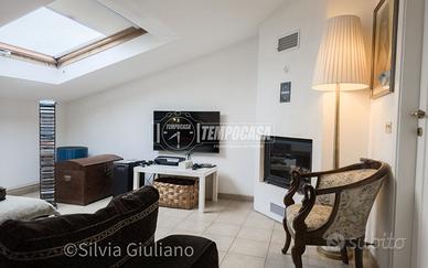 L'ingresso conduce a un luminoso soggiorno con cucina a vista, che si apre su un balcone che regala una vista incantevole sulla Piazza Campioni, uno dei luoghi simbolo della città. L'esposizione a sud garantisce un'illuminazione naturale straordinaria, che fa risplendere ogni angolo di questo accogliente appartamento. La zona notte comprende due camere da letto, un bagno e un ripostiglio. Completano questo piano un ulteriore bagno e un secondo balcone, che affaccia sull'interno, per garantire la massima privacy.