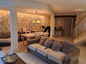 Quartu Capitana, località Is Meris, proponiamo in vendita una splendida villa unifamiliare panoramica sul golfo. La costruzione è stata edificata circa 15 anni fa su un lotto di poco meno di 1000 mq, e si sviluppa su tre livelli cosi composti: piano seminterrato con ampio salone con camino, una cucina, uno studio e due ripostigli; piano rialzato con ampio salone, una camera un bagno e un'ampia balconata che si sviluppa per tutto il perimetro del piano; piano primo con ampia camera padronale con bagno privato, due camere, un bagno e tre balconi La casa è dotata di due ingressi pedonali situati in due vie diverse, e da un ingresso carrabile che da su una comoda zona parcheggio coperta e dotata di colonnina di ricarica per auto elettriche. Nel giardino, ben curato, tra le varie piante che lo caratterizzano sono presenti due splendidi ulivi centenari, che impreziosiscono il contesto. La villa è dotata di un impianto di riscaldamento/raffreddamento alimentati da un moderno modulo inverter fotovoltaico ibrido 6 kw "Solis" con batterie di accumulo, che la rendono completamente "autosufficiente" e autonoma energeticamente, libera da bollette vessatorie. Possibilità di acquistare gli arredi. Per informazioni e appuntamenti Andrea Deidda, tel. A.p.e. In classe C, prestazione energetica globale 29.26 kWh/mq anno
