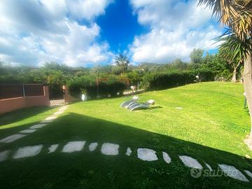 Proponiamo un immobile unico per posizione, privacy e qualità dell'abitare. Inserito in un ambiente naturale di rara bellezza, tra colline mediterranee e scorci sul mare di Pula, la proprietà gode dell'accesso a servizi d'eccellenza e a un'atmosfera di assoluta tranquillità. Totalmente indipendente si sviluppa su 2 livelli con una superficie interna di 120 mq circa e una superficie esterna composta da un meraviglioso giardino totlamete attrezzato e piantumato con alberi di alto fusto, prato verde, barbecue e doccia esterna, di circa 600 mq. La zona giorno è composta da ampio soggiorno con zona cottura a vista, mentre nella zona notte troviamo tre camere da letto ognuna dotata di bagno privato. Le rifiniture sono di altissimo livello completano la proprietà due posti auto.