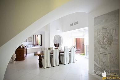(192910981) - Nel prestigioso condominio di Is Morus, a pochi passi dal mare e dal Forte Village, proponiamo una magnifica villa con giardino, sviluppata su due livelli. Il piano terra si compone di un ampio salone, sala da pranzo, cucina, cinque camere di cui quattro con bagno. Il piano superiore di compone di una camera padronale con bagno e guardaroba, alla quale si accede da un soggiorno privato con uscita sulla terrazza. All'esterno sono presenti loggiati e verande, zona barbecue ed un prato verde curato. Ristrutturata nel 2018, la casa è dotata di tutti i comforts. All'interno del condominio Saia - Is Morus sono presenti una serie di servizi: Campi da calcio, da basket, da tennis, bocciofila, bar, ristoranti, aree bambini, guardiania 24h, supermercato, noleggio imbarcazioni, ecc. - Classe: NC