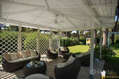 (192910981) - Nel prestigioso condominio di Is Morus, a pochi passi dal mare e dal Forte Village, proponiamo una magnifica villa con giardino, sviluppata su due livelli. Il piano terra si compone di un ampio salone, sala da pranzo, cucina, cinque camere di cui quattro con bagno. Il piano superiore di compone di una camera padronale con bagno e guardaroba, alla quale si accede da un soggiorno privato con uscita sulla terrazza. All'esterno sono presenti loggiati e verande, zona barbecue ed un prato verde curato. Gli arredi sono inclusi nel prezzo. Ristrutturata nel 2018, la casa è dotata di tutti i comforts. All'interno del condominio Saia - Is Morus sono presenti una serie di servizi: Campi da calcio, da basket, da tennis, bocciofila, bar, ristoranti, aree bambini, guardiania 24h, supermercato, noleggio imbarcazioni, ecc. - Classe: NC