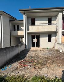 Al piano terra si trova un ampia zona living con cucina open space, luminosa grazie alla porta finestra che conduce al giardino sul retro, completa il piano terra bagno e lavanderia. Al primo piano la zona notte è composta da tre camere da letto, tutte spaziose e dotate di balcone, e un bagno.