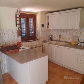 L'abitazione si sviluppa su due livelli collegati da una scala interna ed è composta, al piano terra, da un'ampia cucina arredata con mobili di pregio a marchio Stosa e dotata di elettrodomestici Electrolux (forno, frigorifero, lavastoviglie e piano cottura) di recente acquisto, da un caratteristico salotto con parete in pietra stuccata e da un bagno di servizio; al piano superiore, da una camera con letto matrimoniale di ferro battuto, da una seconda camera con divano letto e da un bagno principale munito di finestra. Il soffitto è in stile rustico, caratterizzato da travi di legno a vista. L'immobile è dotato di nuova caldaia a condensazione Viesmann e di infissi in pvc Schüco.