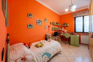 La proprietà è circondata da un ampio giardino che conduce alla zona giorno, composta da: piano terrra salone luminoso, cucina abitabile, bagno di servizio; tramite una comoda scala si accede al piano superiore, dove troviamo la zona notte con tre camere matrimoniali e bagno. Accesso ai balconi di pertinenza.