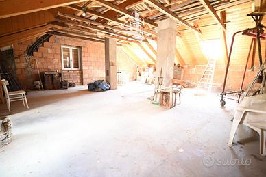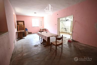 L'immobile si sviluppa su tre livelli. Al piano terra si trovano un garage, diversi locali cantina (possibilità di creare un appartamento) e un ampio giardino di circa 910 m² con accesso ad una fonte d'acqua naturale - ideale per il tempo libero e per gli amanti del verde. Al primo piano si sviluppa l'unità abitativa principale composta da una cucina, un soggiorno, due camere da letto, un bagno, un ripostiglio e un balcone che garantisce ulteriore comfort abitativo. Il sottotetto ospita una spaziosa soffitta con grande potenziale di utilizzo (possibilità di creare un ulteriore appartamento). La proprietà è completata da un'ulteriore cantina al piano interrato e da sei posti auto. La caldaia è stata sostituita nel 2024, migliorando l'efficienza energetica dell'abitazione.