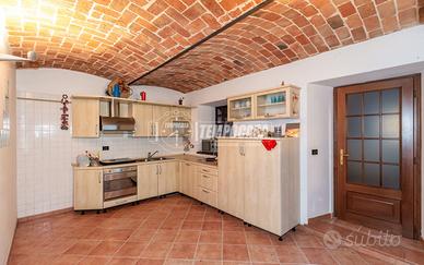 Nel centro paese, comodo a piedi a tutti i principali servizi quali panetteria, scuola elementare, bar e farmacia, proponiamo due case semi indipendenti, ideali per due nuclei familiari, con cortile in comune tra le due unità abitative. La prima soluzione di circa 220 metri quadrati risulta composta da ingresso, salotto con grazioso camino, cucina abitabile, una camera da letto e bagno al piano, mentre una scala permette l'accesso a quello superiore con due camere da letto, salone, cucina e secondo servizio. La seconda invece è di circa 198 metri quadrati, è stata oggetto di una ristrutturazione interna ed esterna avvenuta a metà degli anni '90 ed è così composta: ingresso su salotto con camino termoventilato, cucina, bagno, ripostiglio e locale cantina con accesso diretto ad un box auto e una scala che porta alla zona notte con grande open space, due camere da letto e soppalco, dal quale si accede ad un terrazzo di circa 30 metri quadrati. Completa la proprietà un altro comodo box auto per ricoverare le proprie autovetture.