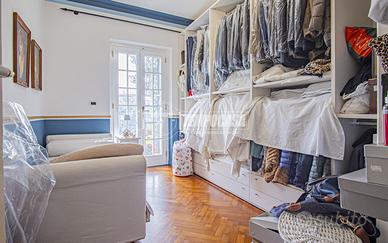 Al piano inferiore, collegato da una elegante scala a chiocciola, si sviluppa la zona notte composta da due camere da letto matrimoniali entrambe con accesso diretto all'esterno, una terza stanza attualmente adibita a cabina armadio ma utilizzabile come terza camera, un secondo bagno con vasca e un comodo ripostiglio.