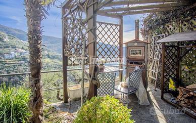 All'esterno troviamo fasce di terreno curate, un'area attrezzata con zona barbecue e relax, e la predisposizione per una piscina grazie alle tubature già installate. Il tutto con una meravigliosa vista mare che abbraccia tutto il Levante.