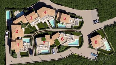 L' unità 2 consiste in una prestigiosa villa singola con piscina privata e splendida vista mare, sviluppata su tre livelli e libera su quattro lati. Al piano terra, la zona giorno è composta da spazioso soggiorno-pranzo con accesso alla veranda di ampio respiro panoramico, cucina separata, bagno comune ed una camera matrimoniale con bagno en-suite.