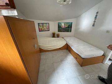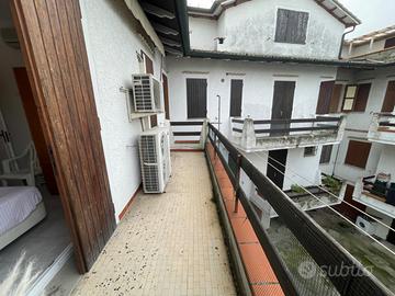 Lido Adriano (RA): Appartamento in villetta con ingresso indipendente e giardino. Al p. 1° terrazzo, soggiorno con angolo cottura, cameretta, camera con balcone e bagno. Al p.2° sottotetto mansardato con due camere ed un bagno. Al p. Seminterrato garage con scala interna per accedere al piano terra. Impianto a gas e termoconvettore caldo/freddo. Predisposizione per il riscaldamento.