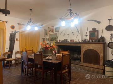 Al piano terra si accede ad un accogliente salone con camino, cucina abitabile e un bagno di servizio. Al piano superiore troviamo una zona notte composta da tre camere da letto, ideali per una famiglia o per creare uno spazio dedicato al relax e alla privacy. Sempre al piano superiore, un secondo appartamento con ingresso indipendente comprende una cucina abitabile, una camera e un bagno, offrendo quindi una soluzione versatile sia per uso residenziale che come investimento.