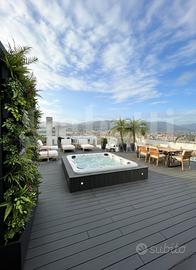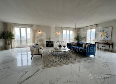 Proponiamo in vendita un attico unico nel suo genere: di ampia metratura, con terrazza, al sedicesimo piano e con 4 autorimesse doppie. L'unità si sviluppa su due livelli: - la zona giorno, al quattordicesimo piano, ha un salone triplo con balconata vista Monte Maddalena, ampia cucina abitabile con balcone, bagno zona giorno e bagno ospiti, 2 camere matrimoniali e cabina armadio; - al piano superiore: zona notte con altre 3 comode camere con balcone, 3 bagni spaziosi e una zona SPA e palestra di circa 60 mq. Le balconate dei due livelli rendono ogni ambiente godibile e luminoso. Fiore all'occhiello di questo immobile è la terrazza esclusiva sul tetto, di circa 250 mq, dove si può installare una piscina per rendere straordinaria questa proprietà. Da ogni finestra troviamo una vista panoramica sulla città e la tripla esposizione rende la luminosità il punto forte di questa soluzione. Il contesto è molto ben abitato e gestito, accoglie numerosi professionisti rinomati e si posiziona nella via più bella di Brescia 2; a pochi passi dalla metropolitana, dal parco Tarello, dalla farmacia Bravi e da svariate altre importanti attività. All'interno, attualmente, la soluzione si presenta parzialmente al rustico e necessita di lavori per poterla valorizzare come merita, di conseguenza vi è la possibilità di totale personalizzazione dei materiali e finiture. Le pertinenze abbinate sono 3 cantine e 4 grandi autorimesse doppie. Si precisa che le immagini sono rendering creati a scopo puramente illustrativo partendo dai volumi reali dell'immobile, per suggerire possibili soluzioni di arredo e finitura